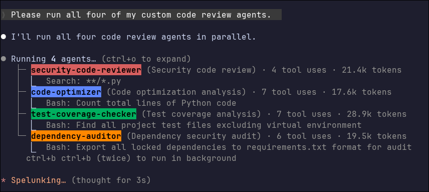 - Read-only analysis: The agents use many tools (~250 combined in the example above), but they don’t make any changes. They provide recommendations that you can have Claude fix later, or address yourself.
